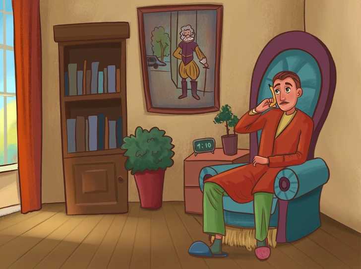 Виждаме мъж в халат и домашни пантофи, който гледа замислено през прозореца, докато седи в една стая. В първия момент може да ви хрумне мисълта: „Е, какво не е наред тук, всичко е наред“. Но не бива да сте толкова сигурни.