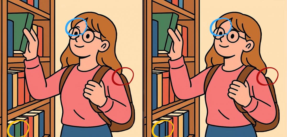 И така, готови ли сте за следващото предизвикателство? Разгледайте внимателно две изображения на момиче, което избира книги в библиотека. На пръв поглед може да изглеждат еднакви, но има три малки разлики. Мислите ли, че можете да откриете всички тях за 19 секунди? Опитайте и проверете остротата на зрението си!