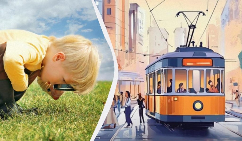 На картинката е изобразена оживена улица, по която се разхождат хора и се движи обикновен трамвай. Трябва да настроите таймер за пет секунди и да успеете да откриете грешката, преди времето да изтече. Готови ли сте?