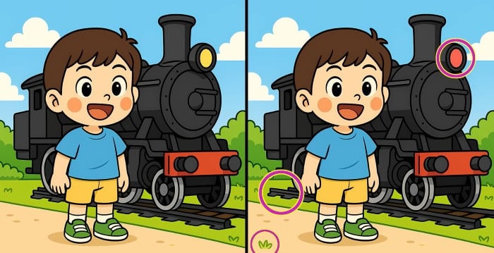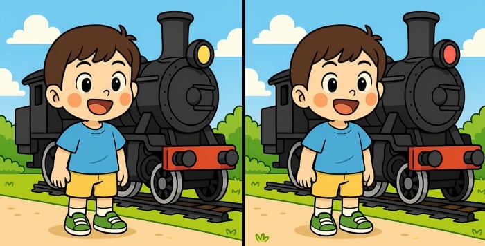 И така, готови ли сте за следващото предизвикателство? Вгледайте се внимателно в двете изображения на момчето, което стои до парния влак. На пръв поглед те изглеждат еднакви, но има три малки разлики. Мислите ли, че можете да откриете всички тях за 29 секунди? Опитайте и проверете остротата на зрението си!