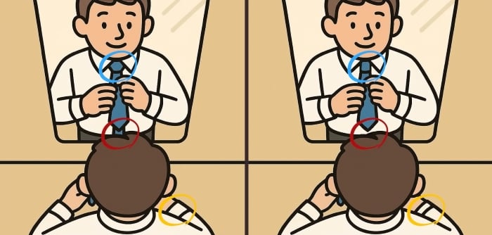 И така, готови ли сте за следващото предизвикателство? Разгледайте внимателно две изображения на мъж, който връзва вратовръзка. На пръв поглед те изглеждат еднакви, но има три малки разлики. Мислите ли, че можете да ги откриете за 45 секунди? Опитайте и проверете остротата на зрението си!