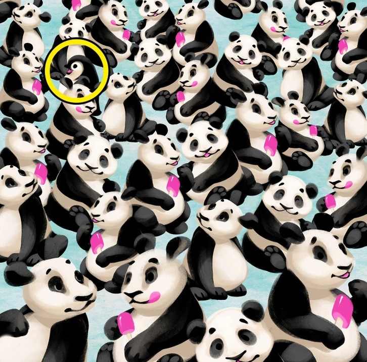 Когато ден след ден ви е скучно и работното ви ежедневие ви лишава от всякакъв ентусиазъм, опитайте да решавате пъзели. Забавните оптични илюзии ще ви накарат да се усмихнете и ще тренират вниманието ви. Този път трябва да открием пингвина сред пандите.