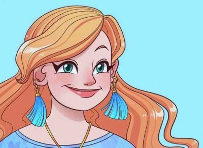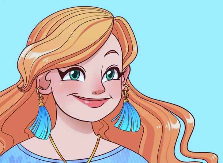 Грешката в рисунката е, че лявото ухо на момичето е обърнато.